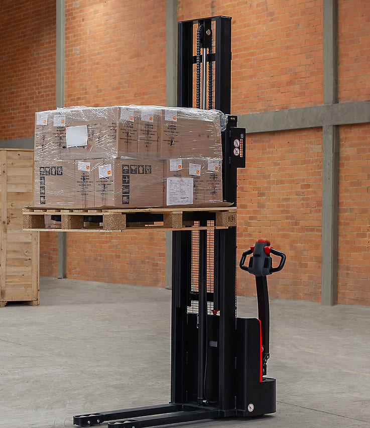 Tienen la característica de ser ligeros, con elevación hidráulica y son ideales para el transporte de carga media y ligera. Por otra parte, los apiladores eléctricos se pueden manejar con un operador a pie o en modelos donde el operario va montado, ya sea de pie sobre la plataforma o sentado.